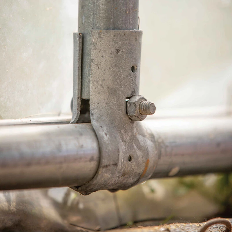 Commonly used to build dog kennels and similar enclosures, these useful clamps can be used for a multitude of projects around the farm. Used in our design plans for the Quick Hoopsβ’ moveable “Cathedral” high tunnel. Includes 5/16″ x 2″ carriage bolt and nut. 1 3/8″ x 1 3/8″. 10 count.