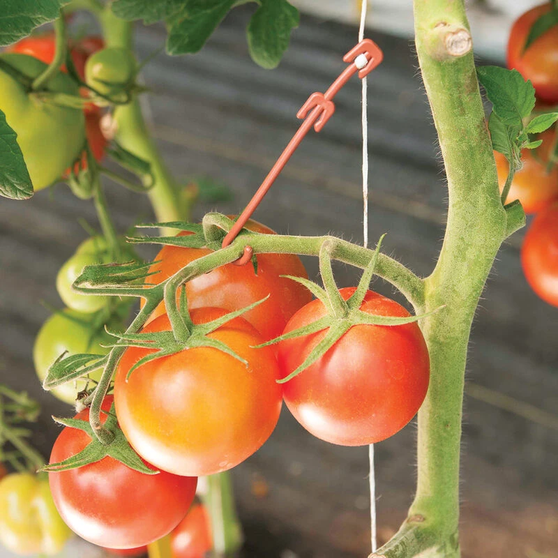 Sturdy polypropylene hooks easily attach to trellis twine to support heavy tomato trusses. Perfect for large-fruiting varieties and heavy producers. Easily adjustable and reusable. Rated to hold up to 20 lb. Approx. 4″ long. 500 count.